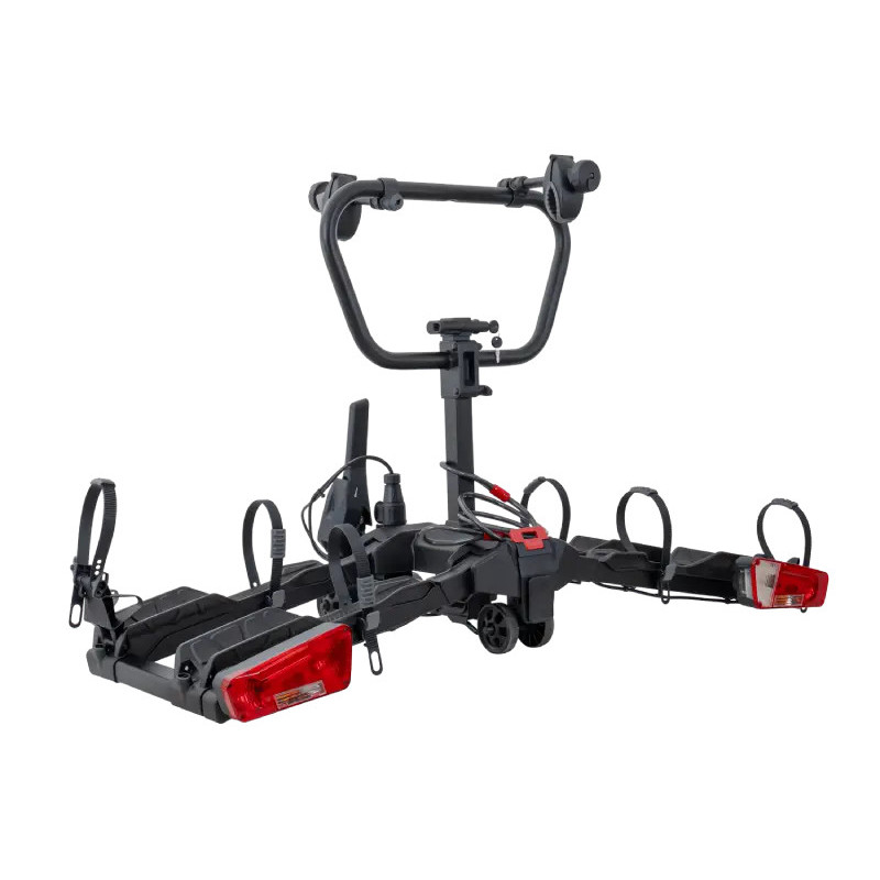 Inter Pack Spider 2E PRO – bagażnik rowerowy na hak (2 rowery elektryczne) Inter Pack Spider 2E PRO to solidna platforma rowerowa montowana na hak holowniczy, zaprojektowana z myślą o bezpiecznym i wygodnym przewozie dwóch rowerów – także ciężkich rowerów elektrycznych. Dzięki ładowności do 60 kg oraz maksymalnej wadze 30 kg na jeden rower platforma pozwala bez problemu transportować e-bike’i, rowery trekkingowe, górskie oraz miejskie. Stabilne uchwyty ramy, szerokie podpory kół oraz mocne zębate paski sprawiają, że rowery pozostają pewnie zamocowane przez całą podróż. To rozwiązanie idealne zarówno na weekendowe wypady rowerowe, jak i dłuższe wakacyjne trasy. Dla kogo jest bagażnik rowerowy Inter Pack Spider 2E PRO? Platforma Spider 2E PRO została zaprojektowana dla użytkowników, którzy oczekują stabilności, bezpieczeństwa oraz wygody obsługi podczas transportu rowerów. Sprawdzi się szczególnie dla osób, które: posiadają rowery elektryczne i potrzebują platformy o dużej nośności podróżują z dwoma rowerami jednocześnie jeżdżą na rowerach MTB, trekkingowych lub miejskich cenią szybki montaż bagażnika na haku chcą zachować dostęp do bagażnika samochodu potrzebują stabilnej platformy do transportu cięższych rowerów Platforma obsługuje rowery z kołami do 29″, oponami o szerokości do 4″ oraz maksymalnym rozstawem osi do 1393 mm. Jakie problemy rozwiązuje platforma Spider 2E PRO? Transport rowerów – szczególnie ciężkich e-bike’ów – bywa problematyczny. Spider 2E PRO eliminuje najczęstsze trudności: problem transportu ciężkich rowerów elektrycznych brak dostępu do bagażnika auta przy zamontowanych rowerach ryzyko uszkodzenia ramy podczas przewozu niestabilne mocowanie kół duże rozmiary platform utrudniające przechowywanie czasochłonny montaż bagażnika Najważniejsze cechy Inter Pack Spider 2E PRO Stabilne mocowanie rowerów Każdy rower montowany jest na oddzielnym wsporniku wyposażonym w zamek. Uchwyty ramy obracają się o 360°, co ułatwia dopasowanie do różnych typów ram rowerowych. Bezpieczne transportowanie rowerów Szerokie podpory oraz mocne zębate paski z gumowymi nakładkami stabilizują koła i chronią obręcze przed uszkodzeniem podczas transportu. Funkcja odchylania platformy Dzięki funkcji odchylania platformy możesz otworzyć bagażnik samochodu nawet wtedy, gdy rowery są zamocowane. To bardzo praktyczne rozwiązanie podczas podróży. Składana konstrukcja Platformę można złożyć po zakończeniu użytkowania, co znacznie ułatwia transport oraz przechowywanie w garażu lub bagażniku samochodu. Pełne oświetlenie drogowe Listwa świetlna wyposażona w gniazdo 13-pin obsługuje wszystkie wymagane światła: światła pozycyjne światła stop kierunkowskazy światło przeciwmgielne światło cofania oświetlenie tablicy rejestracyjnej Zabezpieczenie przed kradzieżą Platforma oraz rowery mogą zostać zablokowane na klucz, co zwiększa bezpieczeństwo podczas postoju. Dane techniczne Inter Pack Spider 2E PRO Inter Pack Spider 2E PRO – Specyfikacja techniczna Parametr Wartość Maks. liczba rowerów 2 Maks. waga jednego roweru 30 kg Maks. ładowność 60 kg Maks. średnica koła 29″ Maks. szerokość opony 4″ Maks. rozstaw osi 1393 mm Odstęp między rowerami 300 mm Kompatybilność ram 25–60 mm Waga platformy 21,5 kg Wymiary ok. 151 × 72 × 67 cm Złącze elektryczne 13-pin Funkcja odchylania Tak Możliwość składania Tak Zabezpieczenie rowerów Tak Inter Pack Spider 2E PRO to stabilny i wytrzymały bagażnik rowerowy na hak, który umożliwia wygodny transport dwóch rowerów – w tym ciężkich rowerów elektrycznych. Dzięki wysokiej ładowności, funkcji odchylania oraz składanej konstrukcji platforma sprawdzi się zarówno podczas codziennych wyjazdów rowerowych, jak i dłuższych wakacyjnych podróży. Inter Pack Spider 2E PRO – najważniejsze korzyści Korzyść Co to oznacza w praktyce? Transport 2 rowerów Idealne rozwiązanie dla par lub rodzin podróżujących z dwoma rowerami Obsługa rowerów elektrycznych Nośność do 30 kg na jeden rower pozwala przewozić ciężkie e-bike’i Składana konstrukcja Platforma zajmuje niewiele miejsca podczas przechowywania Funkcja odchylania Możliwość otwarcia bagażnika auta bez zdejmowania rowerów Stabilne mocowanie kół Szerokie podpory i paski zębate zabezpieczają koła w czasie jazdy Pełne oświetlenie drogowe Listwa świateł 13-pin zgodna z europejskimi normami Zabezpieczenie antykradzieżowe Platforma oraz rowery mogą być zamknięte na klucz Najczęściej zadawane pytania o Inter Pack Spider 2E PRO (FAQ) Czy platforma nadaje się do rowerów elektrycznych? Tak. Maksymalna waga jednego roweru wynosi 30 kg, dlatego platforma bez problemu przewiezie większość rowerów elektrycznych. Czy można otworzyć bagażnik auta z zamontowanymi rowerami? Tak. Platforma posiada funkcję odchylania, która umożliwia dostęp do bagażnika samochodu nawet wtedy, gdy rowery są zamocowane. Czy bagażnik posiada oświetlenie? Tak. Platforma wyposażona jest w pełną listwę świateł z gniazdem 13-pin, obsługującą wszystkie wymagane światła drogowe. Czy bagażnik można złożyć do przechowywania? Tak. Po złożeniu platforma zajmuje niewiele miejsca i może być wygodnie przechowywana w garażu lub bagażniku samochodu.